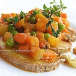 Вкусненькое на сайте Поваренок.ру:   Описание: Наверняка, вы так картофель еще не готовили!? Представляю вашему вниманию оригинальное овощное рагу с жареным картофелем и чесноком, которое в пост можно считать полноценным и самостоятельным блюдом, а вне поста использовать в качестве интересного и необычного гарнира к мясу, птице или рыбе. Угощайтесь! Ингредиенты: Картофель, Чеснок, Тимьян, Сельдерей черешковый, Морковь, Помидор, Горошек зеленый, Вино белое сухое, Томатная паста, Масло растительное, Перец черный, Соль.